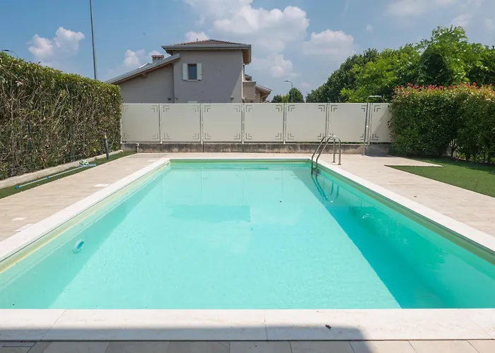 Le domicile de 90 m² se trouve à 3 km du centre-ville de Peschiera del Garda. Le Parc à thème Gardaland est accessible en 10 minutes de route, tandis que l'aéroport de Vérone est à 25 km. Timetofreedom Apartment With Private Garden & Pool est situé à environ 15 minutes en voiture de la Fuga da Atlantide.